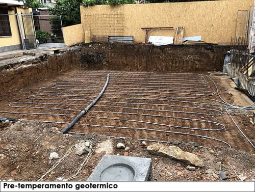 Le metodologie costruttive adottate sono quelli di platea “calda” con dispositivo di pretemperamento geotermico per quanto concerne il sistema di fondazione.