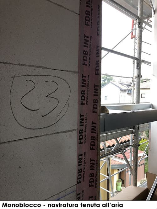 La gestione del nodo finestra prima in fase di definizione dei particolari costruttivi e successivamente in fase realizzatia con prodotti altamente prestazionali e cura sia nella scelta dei monoblocchi sia nella loro posa con schiumatura e nastratura per garantire la tenuta all’aria.